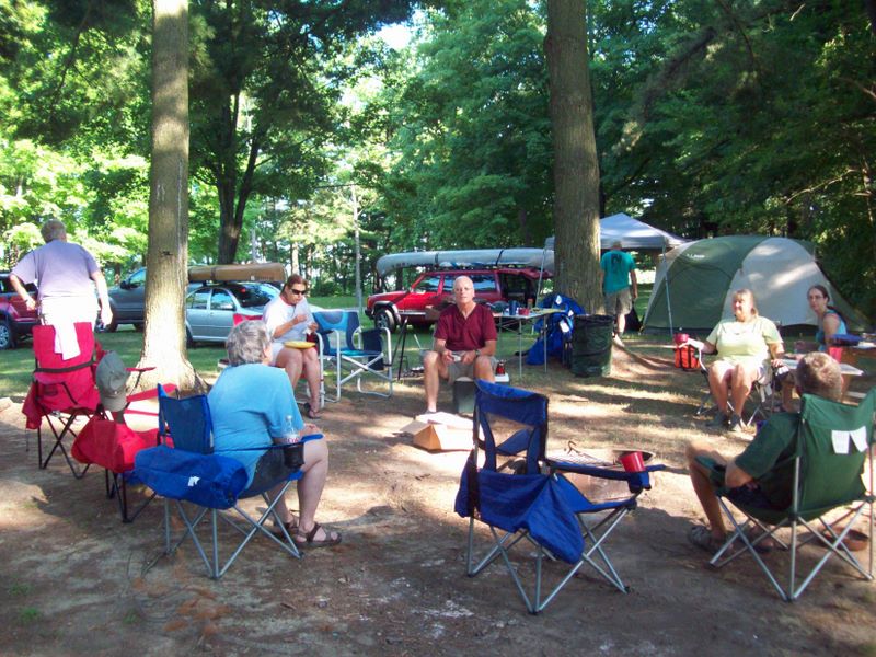 Charles Mill 2011 -- Finishing Breakfast and Talking Canoeing